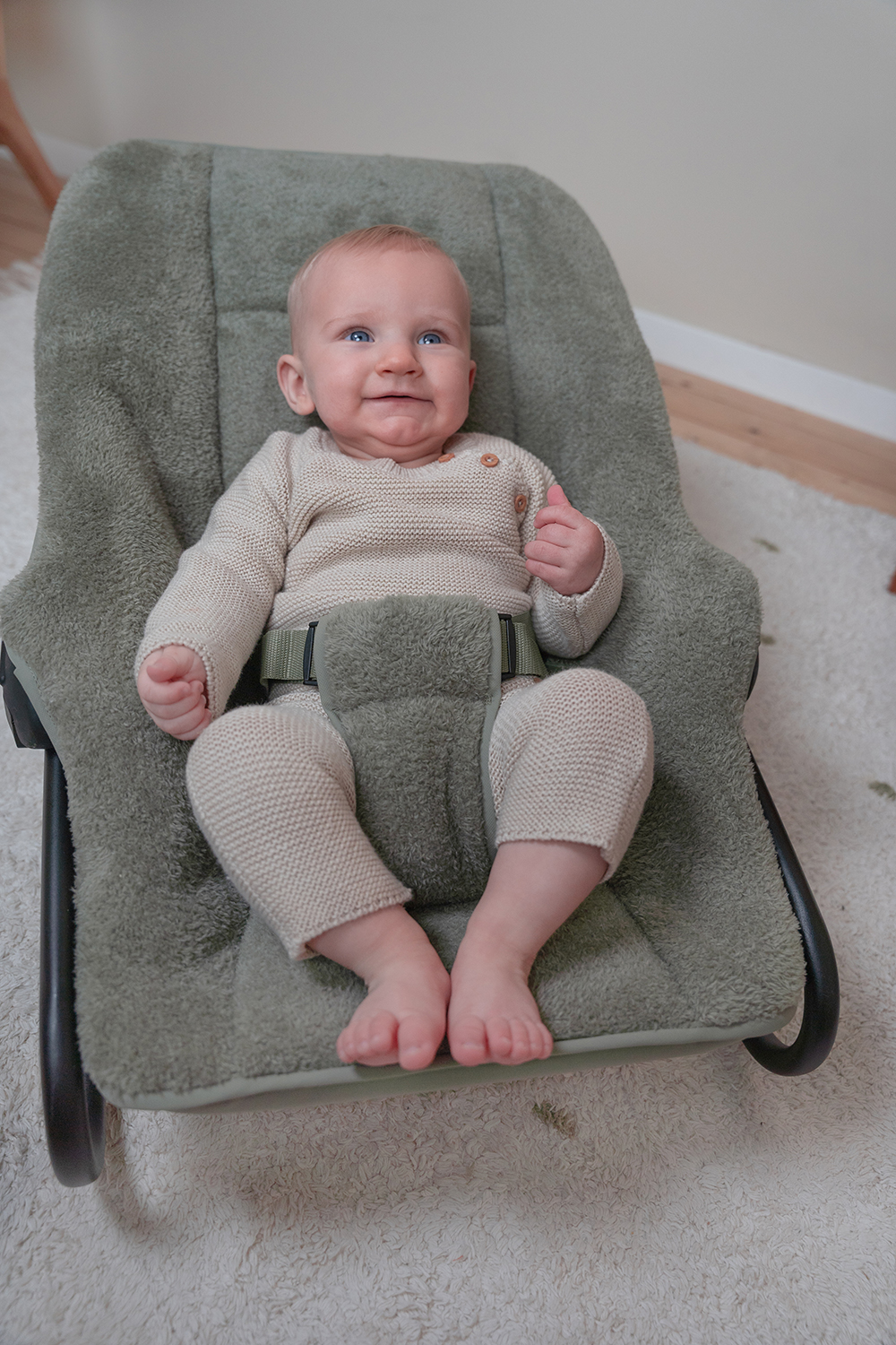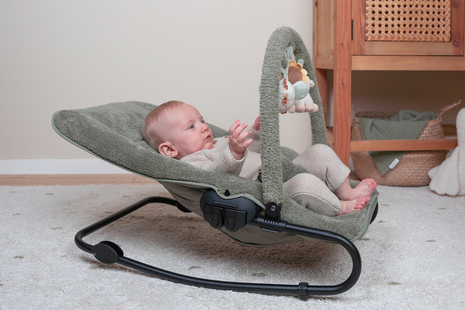 Dank des wippenden Rahmens beginnt die Wippe zu wackeln, wenn Ihr Kind eine kleine Bewegung macht. Sowohl die Rückenlehne als auch die Fußstützen sind verstellbar.