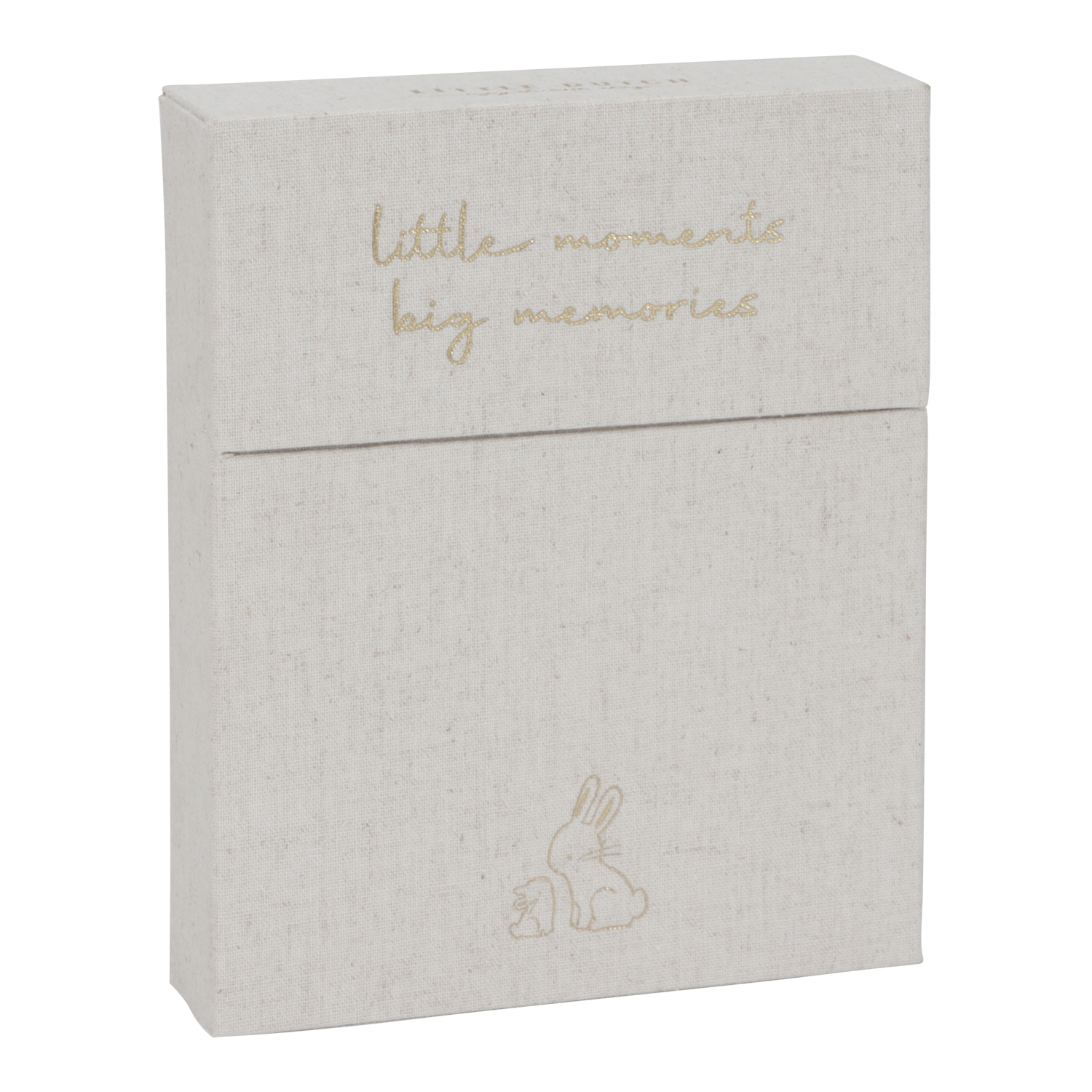 Die Schachtel ist mit dem Text "little moments big memories" und dem zauberhaften Baby Bunny-Motiv verziert, das auch auf den Meilensteinkarten zu sehen ist.