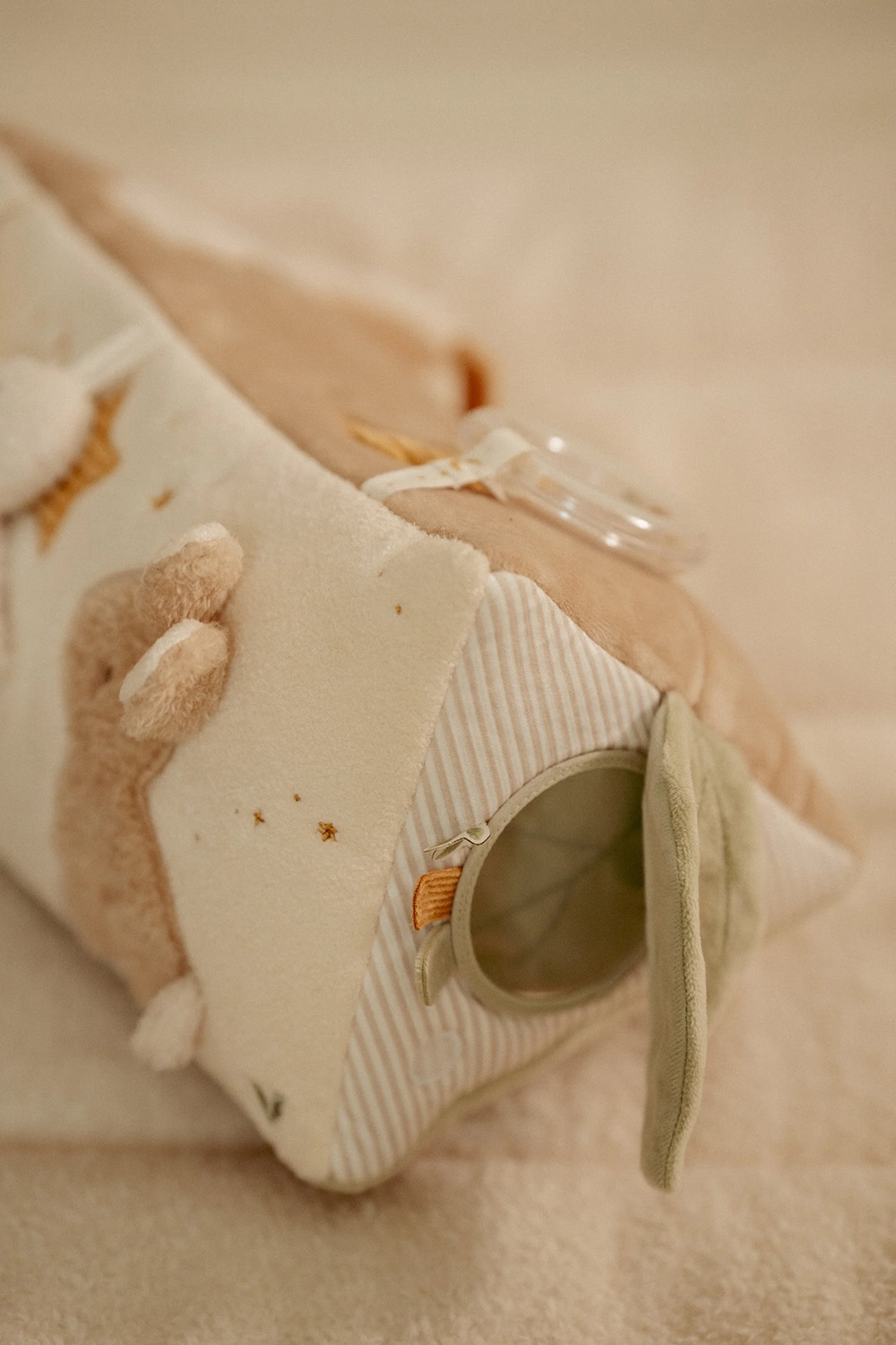 Das Aktivitätsdreieck Newborn Naturals regt die Sinne mit verschiedenen Strukturen, Geräuschen und verspielten Details an.