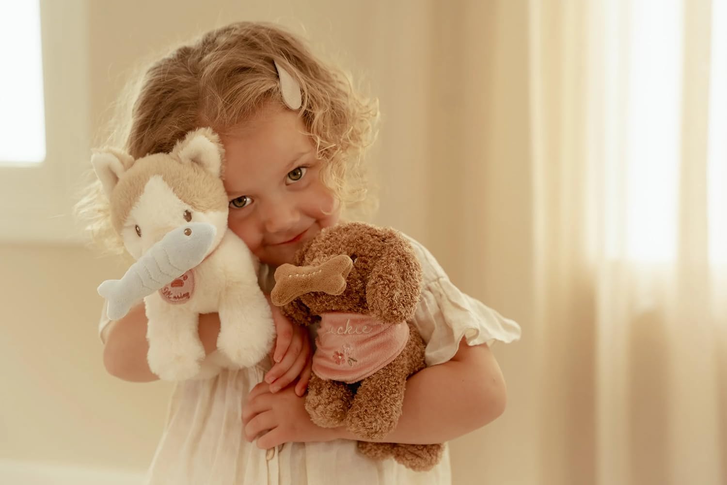 Durch den weichen Stoff und das liebe Gesicht wird Jackie schnell zum Lieblingskuscheltier deines Kindes.