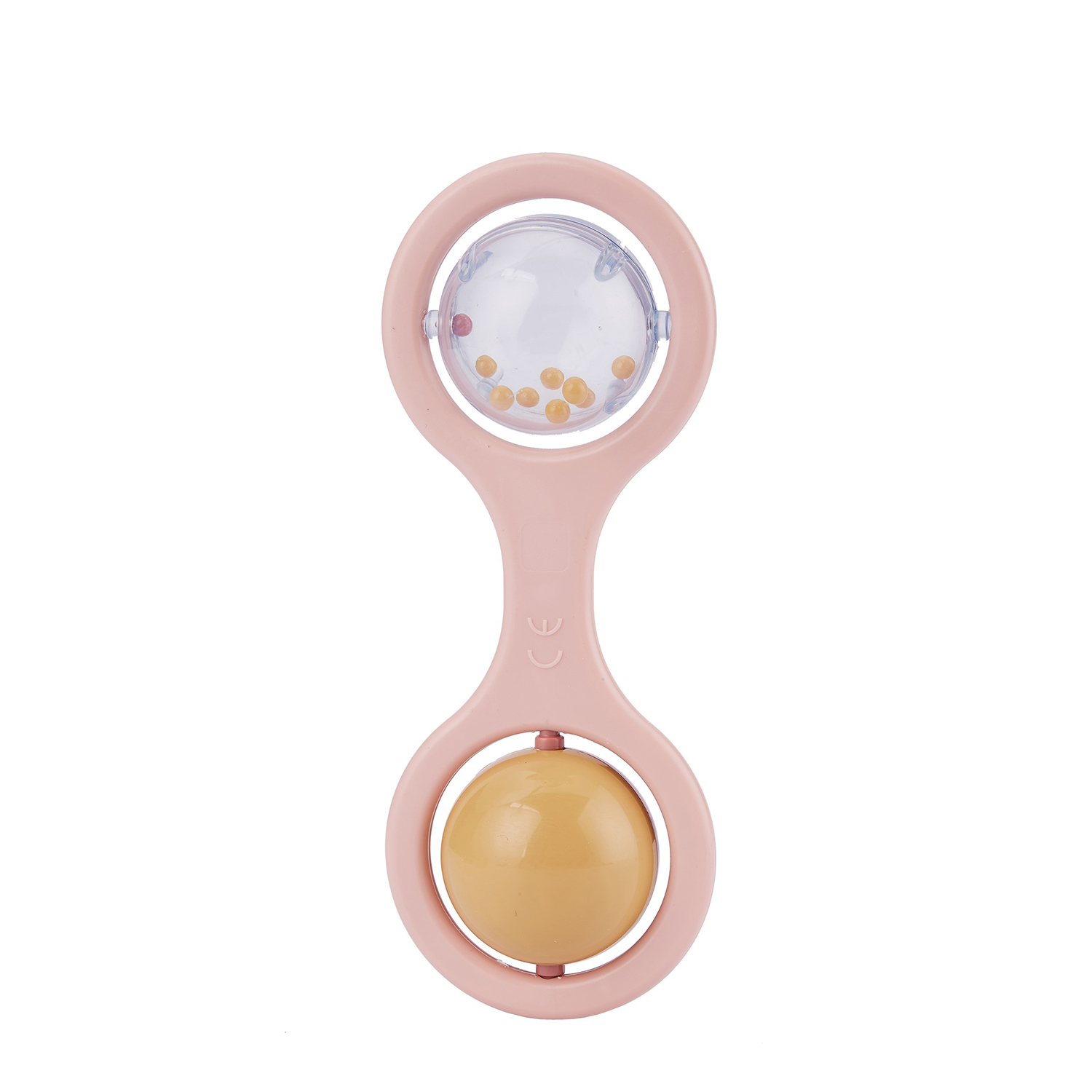 Ihr Kind kann die Rassel schütteln, hören, wie sich die kleinen Kugeln bewegen, und auch den rotierenden Ball drehen.