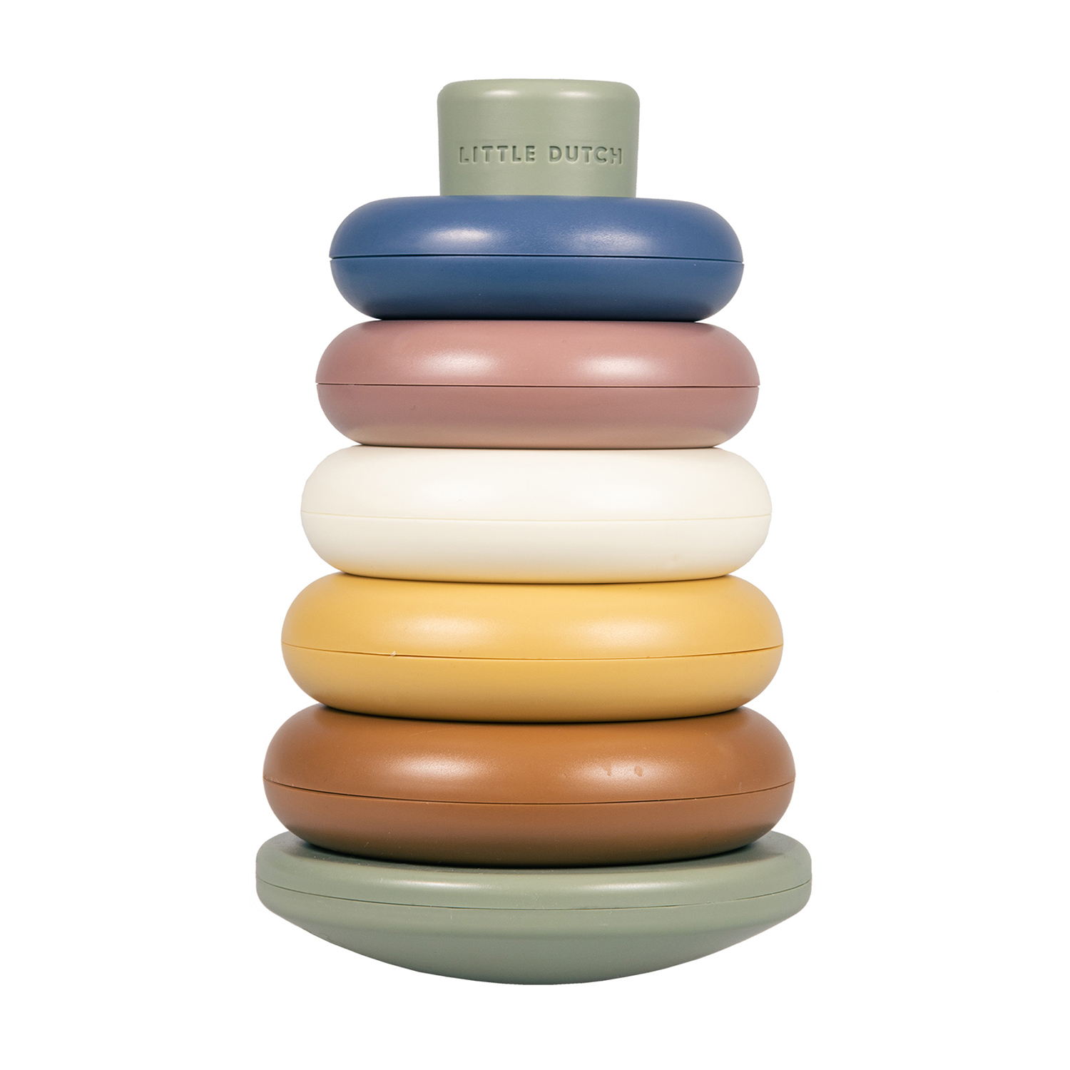 Bau dir einen Turm aus Stapelringen, indem du sie nacheinander auf die kegelförmige Basis legst.