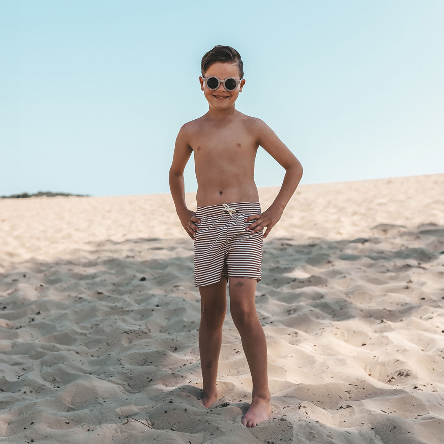 Dadurch fühlt sich die Badehose schnell weich und trocken an, wenn Ihr Kind aus dem Wasser kommt.