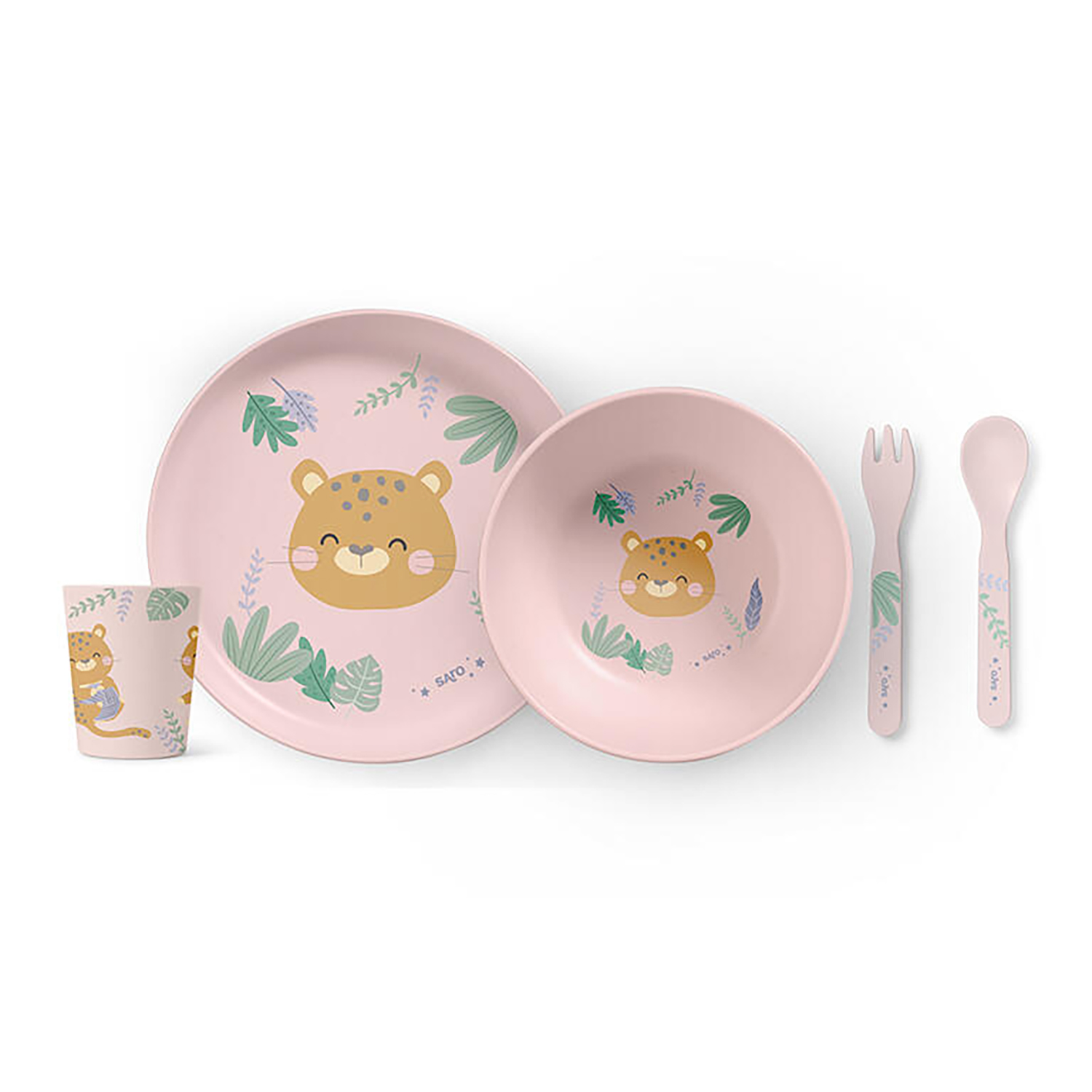Kindergeschirr Set 5-teilig Dschungel Raubkatze rosa