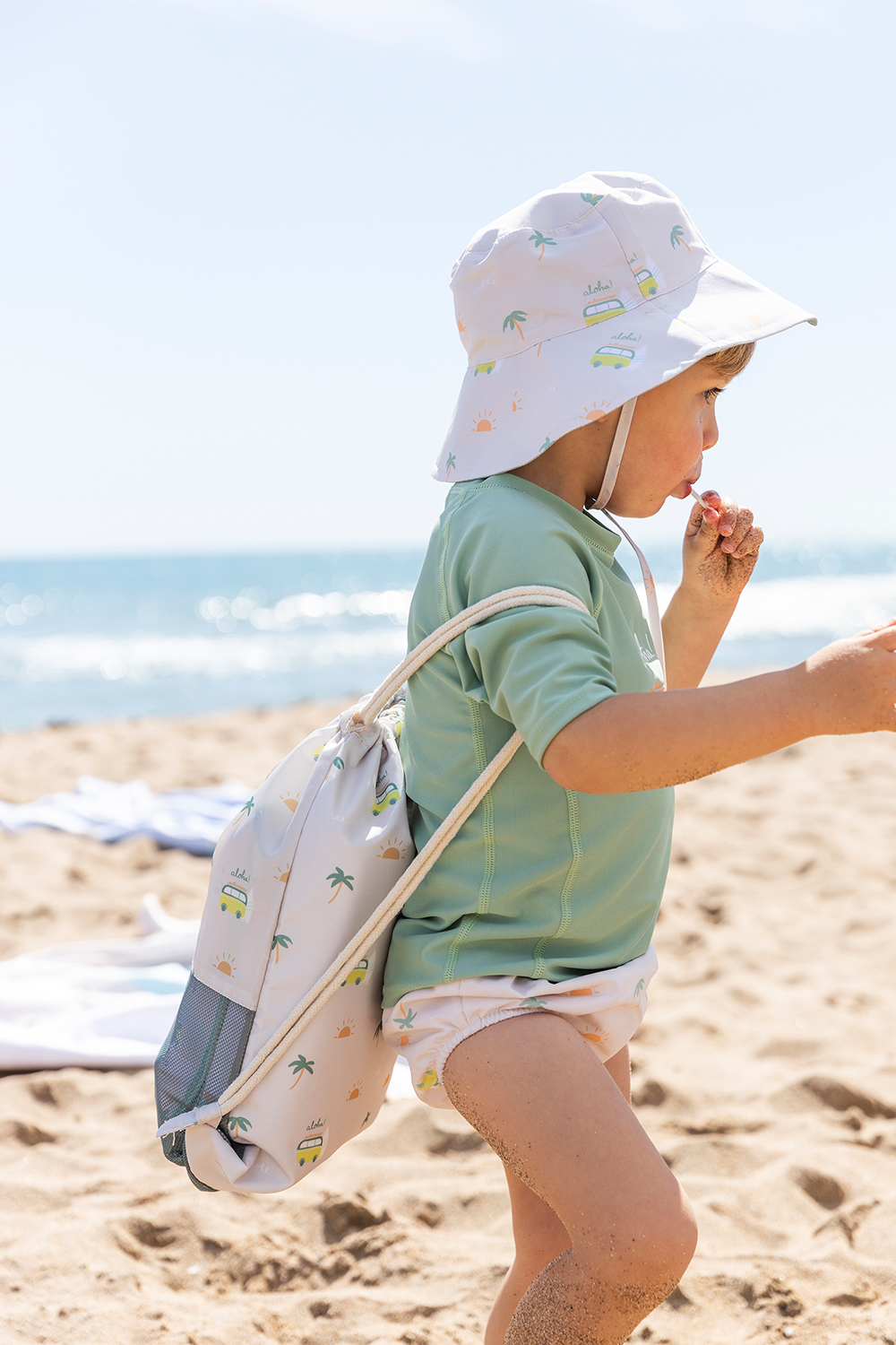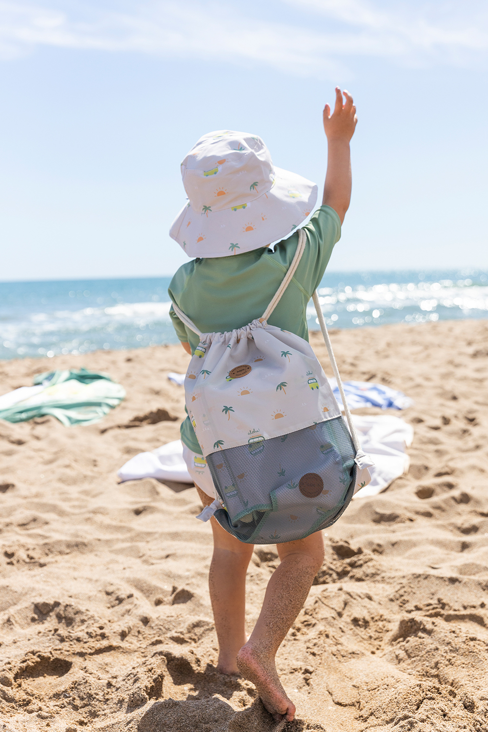 Der Sonnenhut verfügt über einen UV-Schutz UPF 50+ und schützt die Haut Ihres Kleinen, während es Spaß in der Sonne hat.